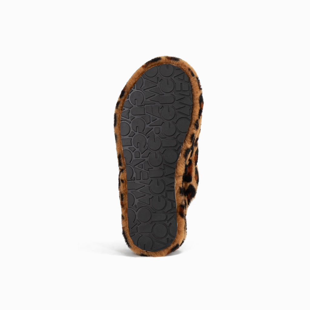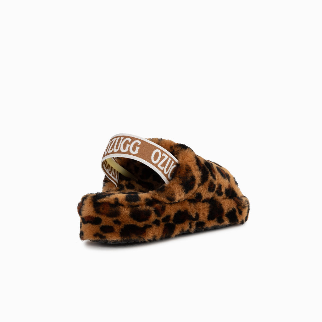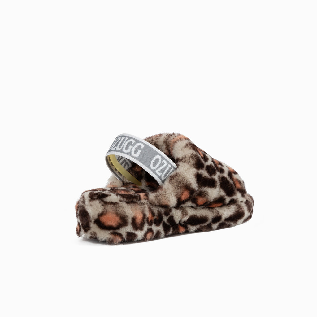 Beautiful fluffy slides featuring a logo elastic open back, leopard print detail and platform soles.