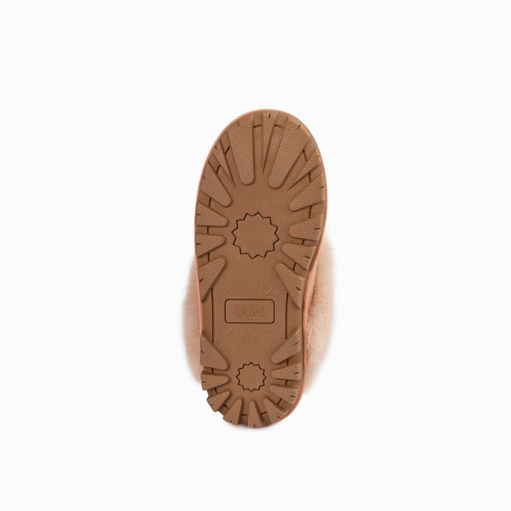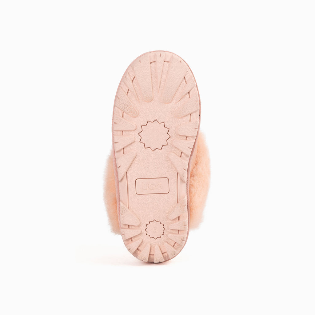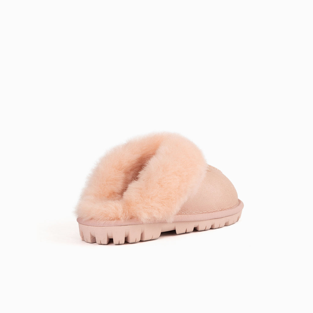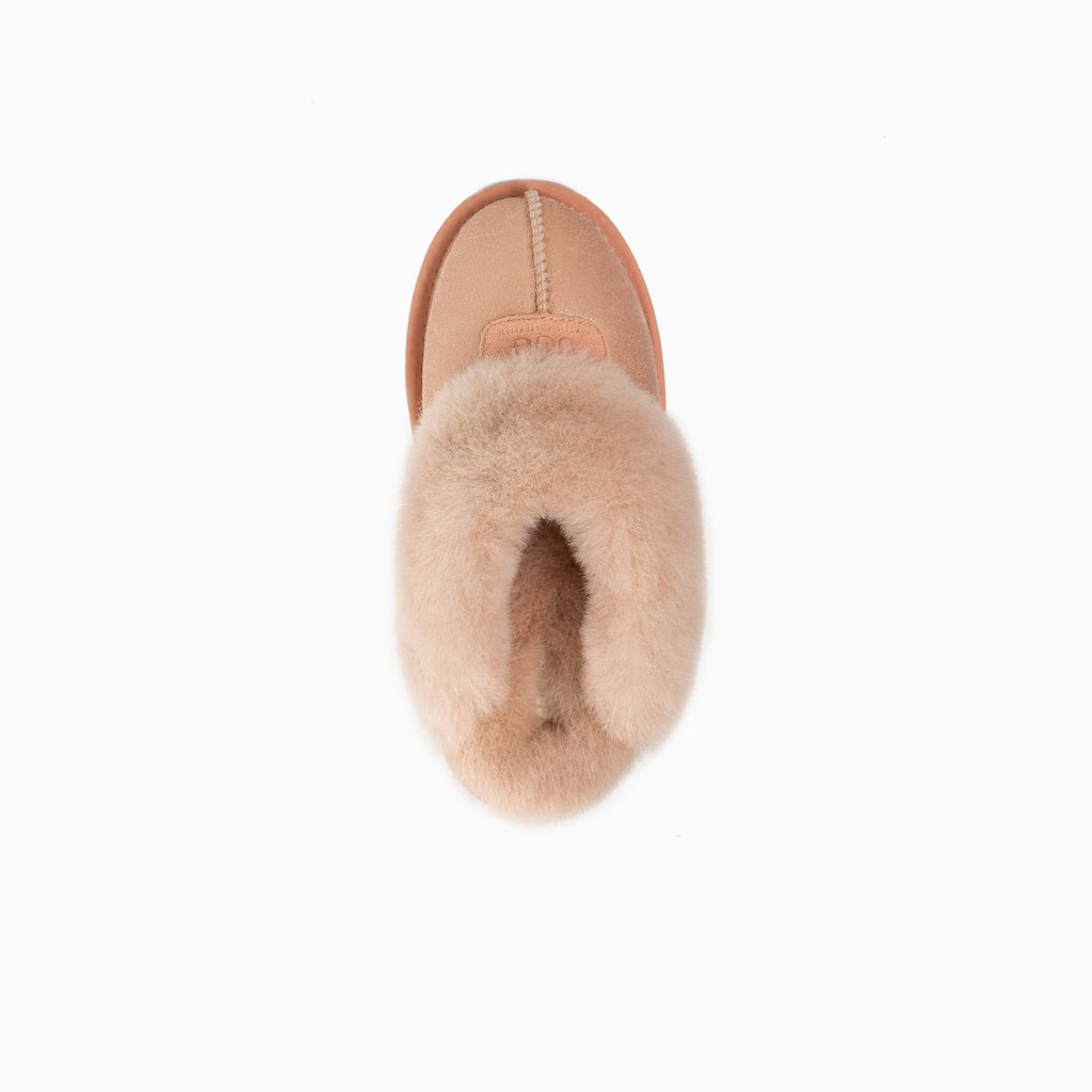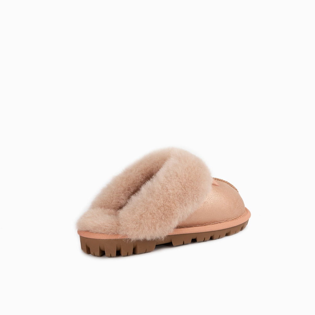 Beautiful sheepskin slipper featuring a metallic finsih, open back, logo detail, sheepswool lining and sturdy rubber soles. The Coquette slipper is perfect for keeping your feet cosy and warm!